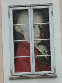 This is probably the most seen photo of Mozart, visible from many shop and office windows.