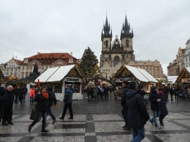 p1050628 A less busy time. Beautiful buildings around the square, including the Tye Cathedral seen here in the background.