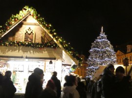 This mammoth tree is the cornerstone of the Old Town Square Christmas Market. It is absolutely encrusted with tiny lights and then garlands lights have been added on top of them. The lovely theme from Polar Express could be heard frequently throughout the area and the lights were synchronized to the tune.