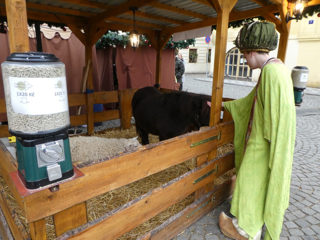 Next to the Nativity scene is a small group of 3 live animals. And in front, the 3 wise men wander around. (I guess the other 2 were on a break.)