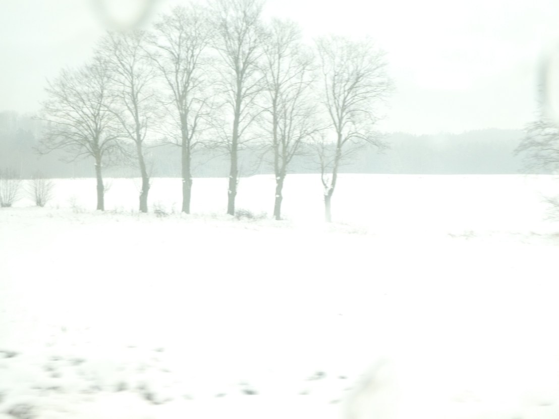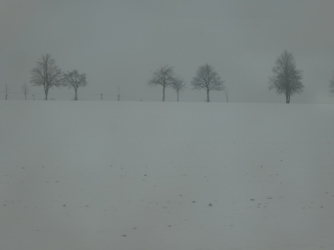 It’s hard to get photos from an fast-moving train. First of all the windows are always dirty. And today we added large ice chunks to the windows that were not very attractive when photographed. And then there’s all those trees that weren’t there when you took the photo but shazam! they’re in the photo when you’re done! Here are a few of my best efforts. I especially like the fact that they all look like they’re in black and white and the last ones that show the bleakness of winter.