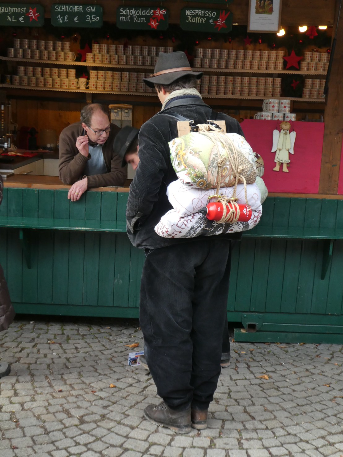 How does one explain a man carrying a yellow ear through a tunnel between 2 sections of the Christmas Market?  We looked at him from behind too and he’s just a short man wearing an apron and carrying an ear and that’s all. Hmmm….