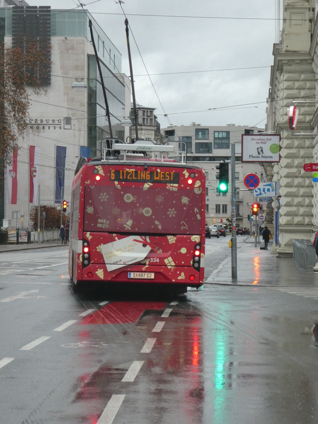 Their electric street cars were painted (covered?) in red for the holidays and were so cute. (Oh look, it’s raining! Again!)