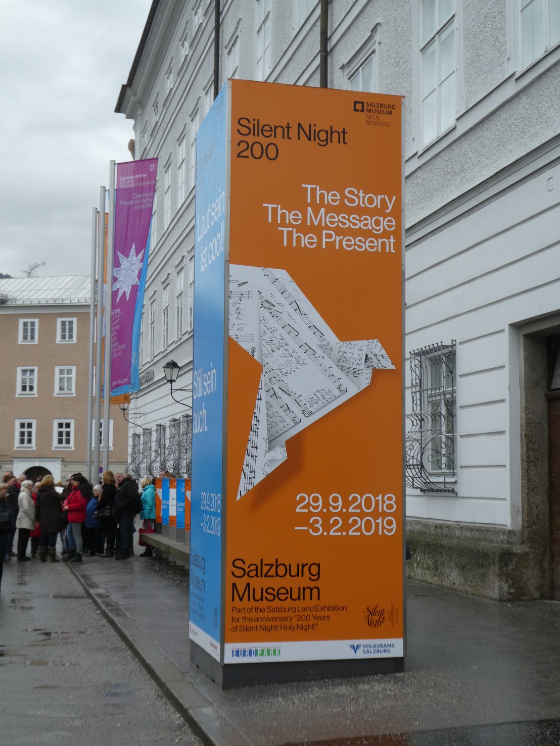 Before we came to Salzburg, I told several people that this year was the 200th anniversary of the Christmas hymn, “Silent Night,” which was written and performed for the first time just outside of Salzburg. (Eyes glazed over.)  Because I knew there were several events planned around the country in celebration, I was surprised that this was the only mention we ever saw of it anywhere in Salzburg.