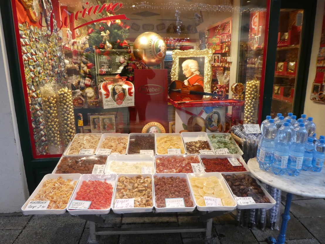Great candy store, lots of Mozart candy. And on the table in front are dried fruits.