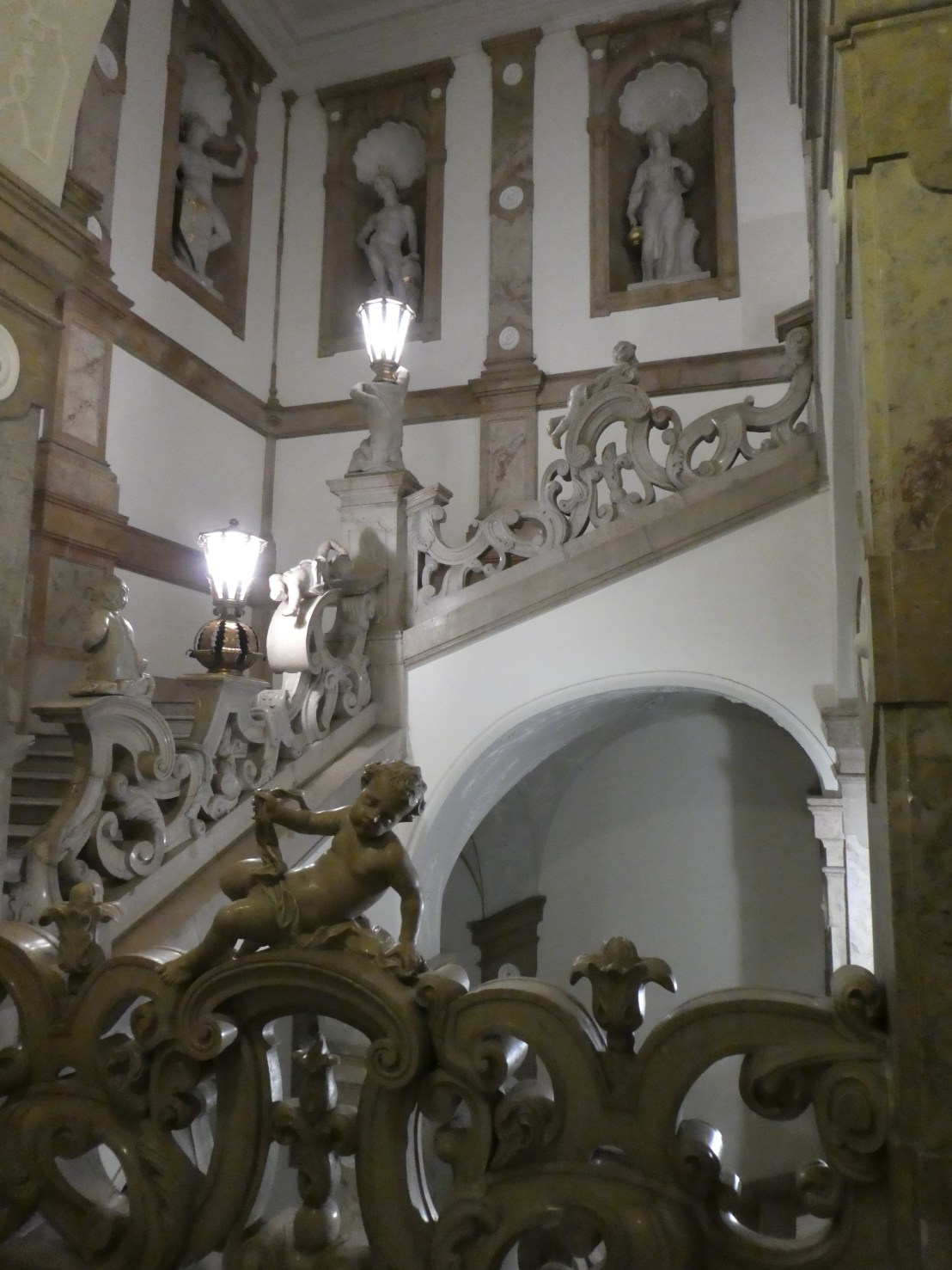 The marble staircase up to the 2nd floor in the Mirabell Palace where the music concert took place.