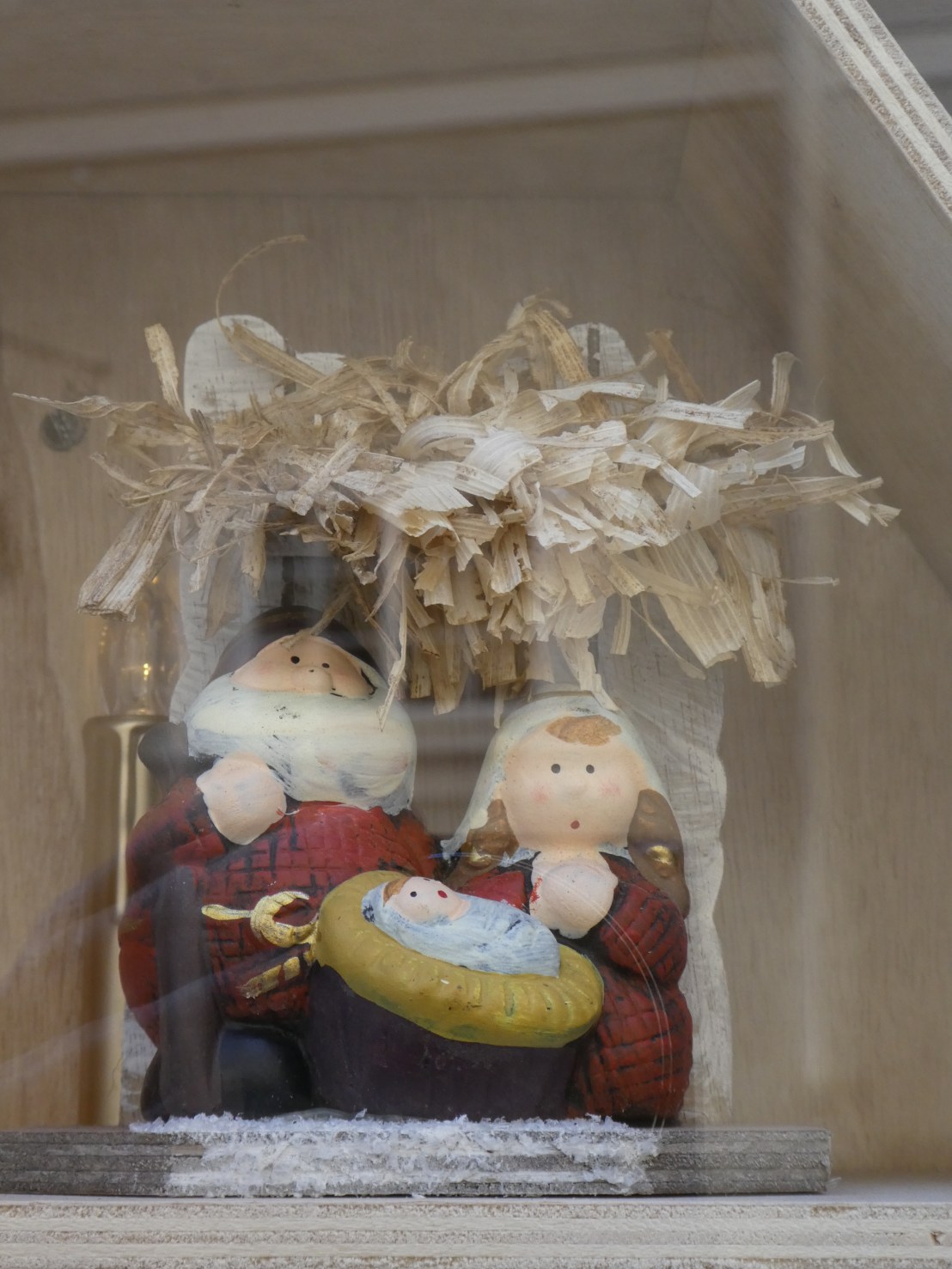 We saw lots of Nativity Scenes in shops and I found fascinating the variety of styles we saw. I’ve included just a few here.